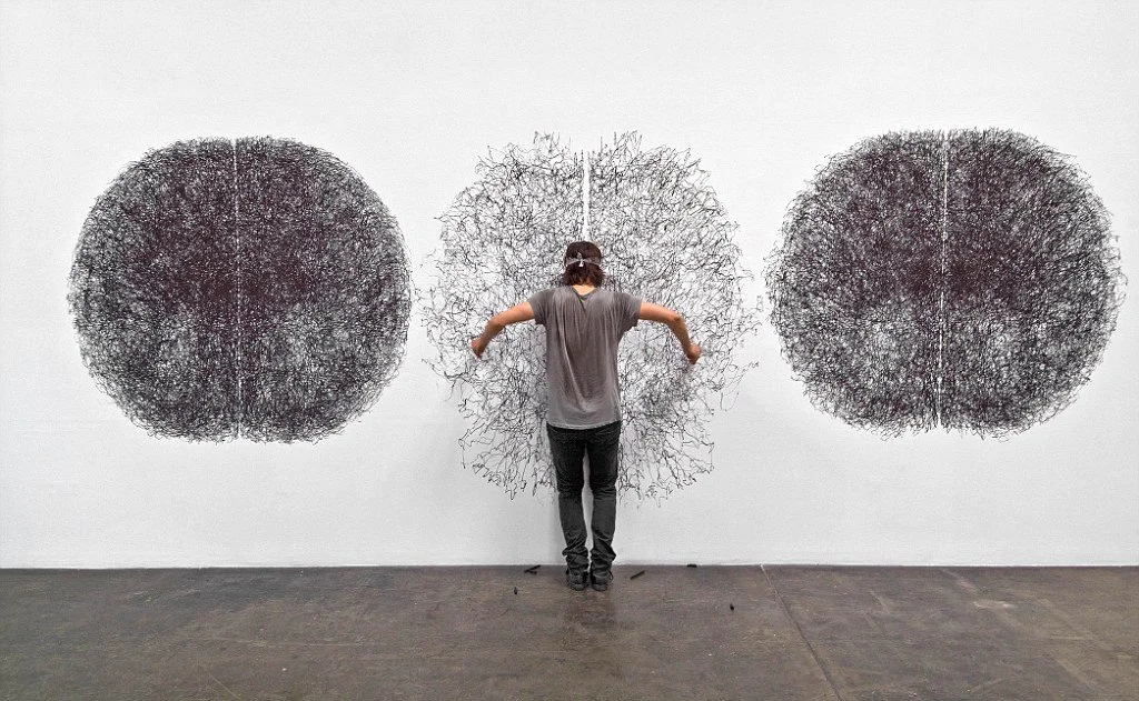 Artist and Psychologist Shagun Agarwal will conduct a workshop that integrates contemporary art practice with art therapy to explore identity through movement, rhythm, and gesture. Using large-scale bilateral drawing, participants engage both sides of the body to bypass conscious control and access subconscious expression. The process positions drawing as an embodied, rhythmic act, allowing participants to witness and negotiate inner dualities—such as control and surrender, stability and change—through an abstract self-portrait that emerges from action rather than representation.
